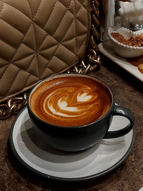 Rich espresso topped with equal parts of steamed milk and frothy milk foam.